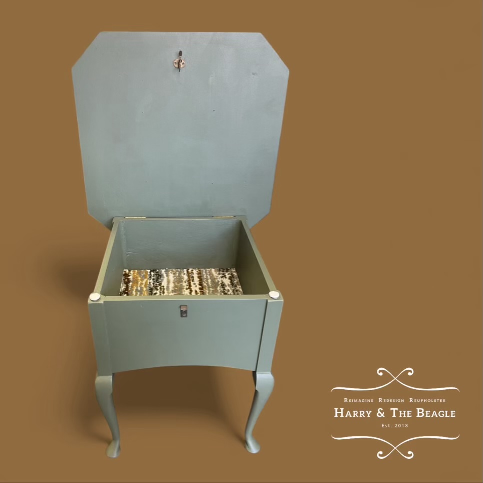 Hand-Painted Upcycled Storage Side Table (Bayberry Green) ✨